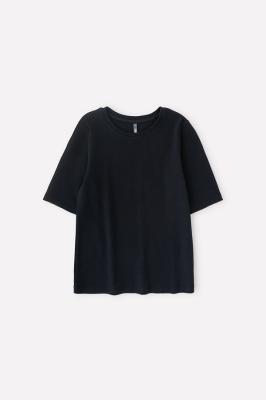Укороченная футболка из приятного материала кашкорсе с эластаном. Эластан в составе делает изделие эластичным и помогает ему дольше сохранять первоначальный вид. Втачные рукава и низ изделия обработаны плоскими швами.Дополнительно