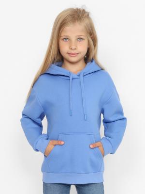 Костюм для девочки с начёсом из футера-трехнитки. Состоит из толстовки с капюшоном со шнурком, карман-кенгуру. Манжеты и пояс из эластичной рибаны. На рукаве декоративная силиконовая нашивка, и брюк с карманами в швах. Пояс с функциональным шнурком, внизу на резинке.Дополнительно
