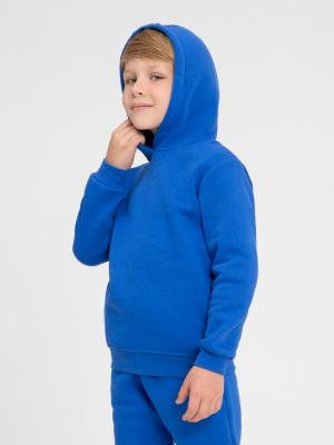 Костюм для мальчика с начёсом из футера-трехнитки. Состоит из толстовки с капюшоном со шнурком, карман-кенгуру. Манжеты и пояс из эластичной рибаны. На рукаве декоративная силиконовая нашивка, и брюк с карманами в швах. Пояс с функциональным шнурком, внизу на резинке.Дополнительно