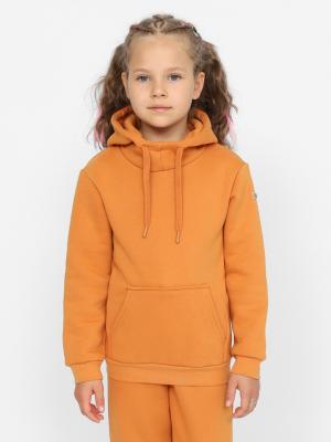 Костюм для девочки с начёсом из футера-трехнитки. Состоит из толстовки с капюшоном со шнурком, карман-кенгуру. Манжеты и пояс из эластичной рибаны. На рукаве декоративная силиконовая нашивка, и брюк с карманами в швах. Пояс с функциональным шнурком, внизу на резинке.Дополнительно