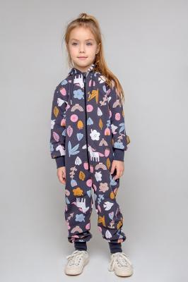 Набивной комбинезон для девочки из петельчатого футера, произведенного из натурального хлопка. Манжеты выполнены из эластичного трикотажа, капюшон с подкладом регулируется с помощью шнурка, по бокам карманы. Изделие застегивается на молнию, имеет защиту для шеи и подбородка. Оригинальная набивка выполнена из стойких текстильных красителей. Комбинезон сохраняет цвет и форму после многократных стирок.Дополнительно