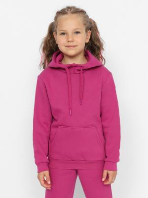 Толстовка для девочки с капюшоном со шнурком, карман-кенгуру. Манжеты и пояс из эластичной рибаны. На рукаве декоративная силиконовая нашивка.Дополнительно