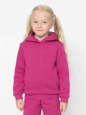 Толстовка для девочки с капюшоном и карманами в боковых швах. Манжеты и пояс из эластичной рибаны. Внизу на полочке декоративная силиконовая нашивка.Дополнительно
