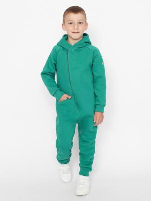 Комбинезон для мальчика на "молнии" с капюшоном и карманом. Рукава-реглан. Манжеты из эластичной рибаны. На рукаве декоративная силиконовая нашивка.Дополнительно