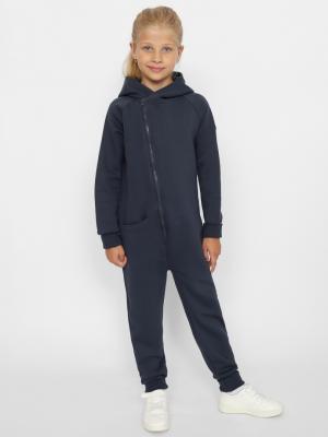 Комбинезон для девочки на "молнии" с капюшоном и карманом. Рукава-реглан. Манжеты из эластичной рибаны. На рукаве декоративная силиконовая нашивка.Дополнительно