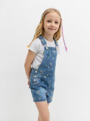 Стильный комбинезон с монохромным принтом из голубого хлопкового денима для девочек. Воздухопроницаемый, гипоаллергенный и износоустойчивый материал, который отлично сохраняет свою форму и обеспечивает высокий комфорт во время носки. Прямой крой. Короткие шорты с боковыми застежками на кнопки. По два кармана спереди и сзади. Широкие отстегивающиеся лямки с возможностью регулировки. Нагрудный накладной карман. Универсальная и стильная модель, которая впишется в гардероб любой модницы.Дополнительно