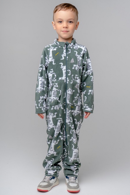 Флисовый комбинезон для мальчика. У изделия высокий воротник, предусмотрена защита шеи и подбородка, спереди карманы-кенгуру. Длинные рукава-реглан и низ изделия обработаны эластичным кантом для лучшего прилегания к телу. Резинка в поясе на спинке обеспечивает удобную посадку по фигуре. Оригинальная набивка выполнена из стойких, гипоаллергенных текстильных красителей. Комбинезон сохраняет цвет и форму после многократных стирок.Дополнительно