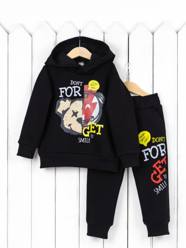 Комплект для мальчика состоит из худи и брюк. Выполнен из пике с небольшим начёсом (80% хлопок, 20% п/э). Худи с капюшоном и печатью по переду. Брюки с отрезным поясом и боковыми карманами, с печатью по левой стороне.Дополнительно