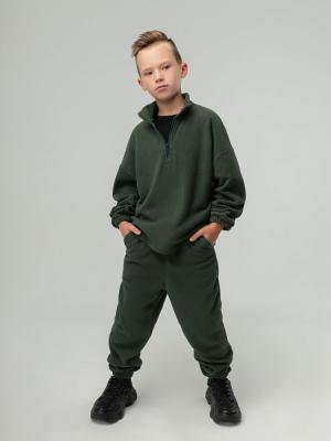 Костюм для детей школьного возраста. Толстовка без подкладки, прямого силуэта со спущенным плечом, втачными рукавами с цельнокроеной манжетой с резинкой внутри. Воротник стойка, застёгивается на короткую молнию по центру полочки. Низ изделия ровный.Брюки прямые свободные на притачном поясе с внутренней резинкой. Низ брюк с цельнокроеной манжетой на резинке. Брюки с боковыми карманами. Костюм выполнен из качественного флиса плотностью 190гр.Дополнительно