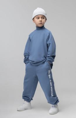 Костюм для детей дошкольного возраста. Толстовка прямого свободного силуэта с втачным рукавом на цельнокроеной манжете с резинкой. Воротник стойка (без отворота), низ изделия ровный. Брюки прямые свободные на притачном поясе с внутренней резинкой. Низ брюк с цельнокроеной манжетой на резинке. Брюки с боковыми карманами. На брюках располагается принт.Дополнительно