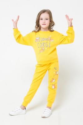 Костюм для девочки. Джемпер из хлопкового однотонного трикотажа футер. Длинные объемные рукава со спущенным плечом. Пояс и манжеты из хлопка с эластаном. Брюки из хлопкового однотонного трикотажа футер. Пояс и манжеты из хлопка с эластаном. Внутри пояса резинка, утяжка на репсовой ленте. Боковые карманы. Спереди принт.Дополнительно