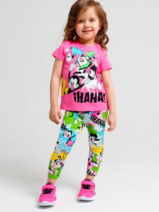 12449017 Комплект детский трикотажный для девочек: фуфайка (футболка), брюки (легинсы)