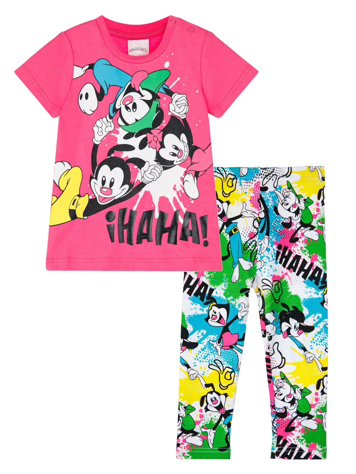 Комплект: футболка и легинсы из качественного и приятного на ощупь трикотажа джерси. Высокое содержание хлопка. Благодаря наличию эластана в составе ткани изделие проще в уходе и держит форму. Кнопки на плечах.Дополнительно