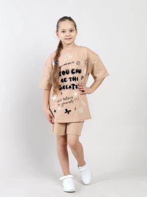 CSJG 90287-31-433 Комплект для девочки (футболка, шорты),бежевый