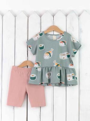 Комплект для девочки футболка с воланом (кулирка 100% хлопок) + короткие легинсы (кулирка 95% хлопок, 5% эластан). Прекрасно подойдет для летних прогулок, для детского сада и для дома.Дополнительно