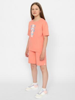 CSJG 90194-28-379 Комплект для девочки (футболка, шорты),коралловый