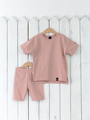 Комплект для девочки, состоит из футболки свободного кроя с небольшими разрезамии по бокам и коротких легинсов-"велосипедок". Выполнен из эластичной кулирки, 95% хлопок, 5% эластан.Дополнительно