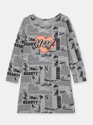 Платье для девочки с длинными рукавами из эластичного трикотажного полотна с набивкой. Перед платья декорирован принтом и вышивкой с пайетками.Дополнительно