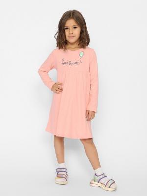 Платье для девочки с длинными втачными рукавами. Перед платья с кокеткой по линии груди и небольшой сборкой. Кокетка оформлена принтом.Дополнительно