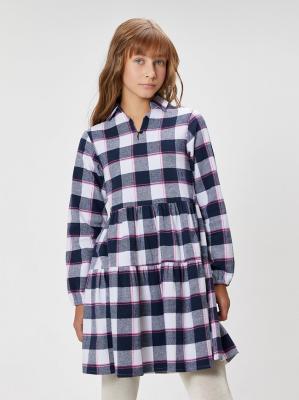 Платье для девочки выполнено из дышащей хлопковой ткани. Модель свободного силуэта, длиной до колена, воротник рубашечный. Перед с застежкой-каплей на петли и пуговицы. Рукав длинный, без манжет, низ рукава присобран на резинке. Комбинируйте платье со светлыми колготками и туфлями "Мэри Джейн" или сапожками для создания модного образа.Дополнительно
