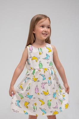 КР 5589/св.беж.меланж,цветные какаду к333, платье