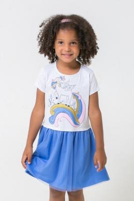 Платье из меланжевого полотна с отрезной юбкой на сборке из сетки. Короткие рукава. Спереди принт.Дополнительно