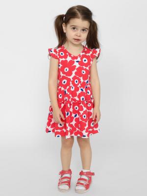Платье для девочки из набивного хлопка, отрезное по талии с рукавами-крылышками. Юбка со сборкой. Горловина V-образная обработана окантовочной бейкой из кулирки.Дополнительно
