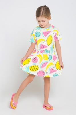 Платье для девочки из трикотажного хлопка с набивным рисунком. Короткие рукава со спущенным плечом. Юбка со сборкой.Дополнительно