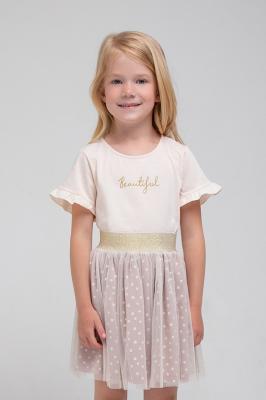 Нарядная юбочка из набивного трикотажа супрем. Верхний слой из сетки. Широкий золотистый пояс гармонично сочетается с кофейным цветом сетки и оттенком основного полотна.Дополнительно