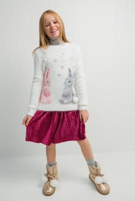 Юбка из мягкого трикотажного велюра с декоративным рельефом. Талия на эластичной резинке. Трикотажная подкладка.Дополнительно