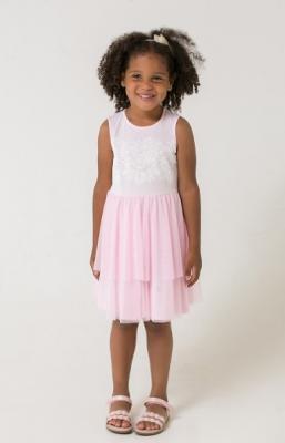 Платье из хлопкового трикотажа супрем, отрезная юбка на сборке. Верхние слой юбки из сетки с открытыми срезами. Спереди на полочке принт. Застежка по спинке на кнопки-ободок.Дополнительно