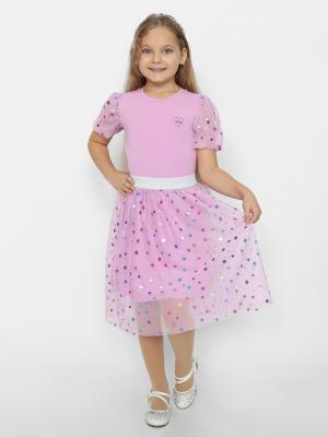 Нарядная двухслойная юбка для девочки из сетки, с блестящими кружочками "конфетти". Эластичный пояс с люрексом. Подкладка выполнена из хлопкового трикотажа. Подкладка короче верхнего слоя сетки.Дополнительно