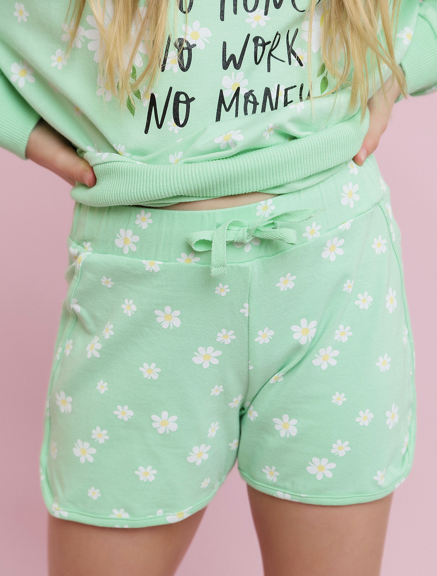 Шорты для девочки трикотажные на резинке. Спортивные шорты от batik в мятном оттенке с принтом в виде ромашек − идеальная летняя модель для ярких образов. Модель выполнена из эластичного супрема.Дополнительно