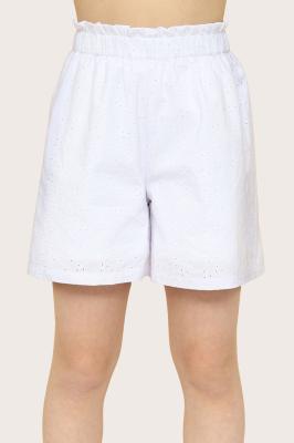 Шорты для девочки выполнены из натурального хлопка, который прекрасно пропускает воздух, хорошо держит форму и приятно прилегает к телу. Трендовая летняя и романтичная вышивка ришелье в цветок. Свободного силуэта с подкладкой из кулирки и поясом на резинке.Дополнительно