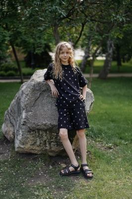 ти шорты идеально подходят для летнего гардероба девушки-подростка. Они изготовлены из дышащего трикотажа, что обеспечивает комфорт в теплую погоду. Свободный крой и средняя посадка на талии добавляют удобства, а эластичный пояс с кулиской позволяет легко регулировать их по размеру.Блестящий принт придает шортам стильный и модный вид, что делает их подходящими как для повседневной носки, так и для более праздничных случаев. Скошенные карманы по бокам добавляют практичность, куда можно поместить небольшие необходимые вещи, такие как телефон или ключи.