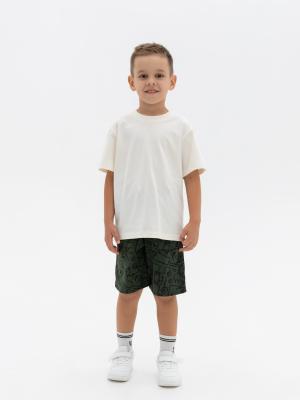 Шорты для мальчика: Верх шорт обработан притачным поясом из основного полотна, внутрь вставлена резинка и шнурок. На передних половинках расположен карман. Полотно с набивкой "абстракция".Дополнительно