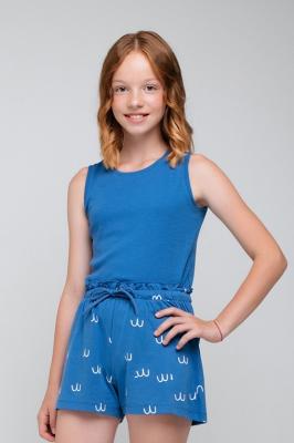 Шорты для девочки с рюшей на поясе. Сшиты из лёгкого хлопкового трикотажа супрем. Украшены набивным рисунком с рисованными чайками. Ширина регулируется с помощью шнурка. Низ изделия обработан плоскими швами.Дополнительно