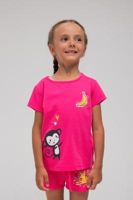 Шорты с резинкой в поясе. Сшиты из однотонного трикотажа футер петля в тёмном розовом оттенке и украшены принтом. Пояс регулируется по ширине с помощью ленты. По бокам вставки. Низ и края обработаны кантом.Дополнительно