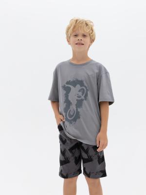 Шорты для мальчика: из набивной кулирной глади. Верх шорт обработан притачным поясом с добавлением эластана, в пояс вставлена резинка и функциональный шнур. На передних половинках шорт располагаются карманы с подрезным бочком.Дополнительно
