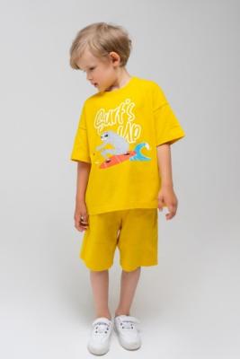 Шорты из однотонного трикотажа супрем горчичного цвета. Пояс регулируется по ширине с помощью ленты. Украшены рельефными швами спереди на бёдрах. По бокам удобные карманы.Дополнительно