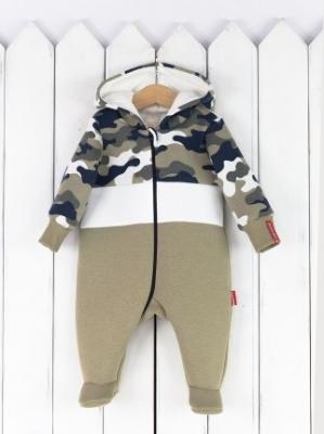Теплый комбинированный комбинезон из футера 3-нитки с начесом (80% хлопок, 20% п/э). Капюшон на подкладке из кулирки, 100% хлопок. Размеры 62 — 68 с закрытой стопой, 74 и 80 — на манжете.Дополнительно