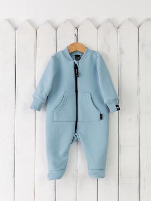 Теплый комбинезон на молнии, с карманом-кенгуру. Выполнен из футера 3-нитки с начесом (80% хлопок, 20% полиэстер), манжеты и воротник их кашкорсе, 95% хлопок, 5% эластан. Размеры 62 и 68 с закрытой стопой, 74-86 на манжете.Дополнительно