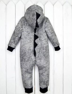 Модный комбинезон на молнии с гребешками дракона по капюшону и спинке изделия, выполнен из футера 3-нитки с начесом, 80% хлопок, 20% п/э. Глубокий капюшон со стойкой и контрастной подкладкой из кулирки, 100% хлопок. Все размеры выполнены без стопы, на манжете по низу штанин.Дополнительно