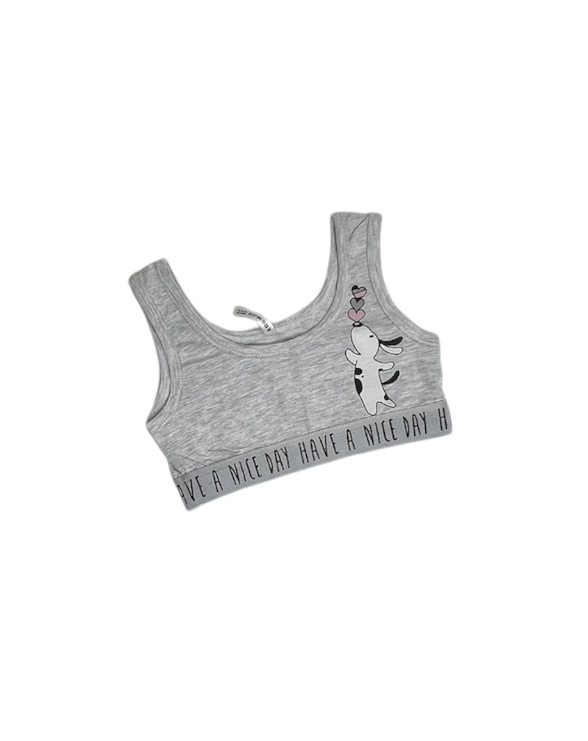 Майка-топ для девочки серая из супрема пенье с рисунком и резинкой с надписью. Детский бельевой топ на широких бретелях для девочек и девочек-подростков выполнен из натурального гипоаллергенного хлопка. Благодаря эластану в составе ткани топик отлично тянется и дарит свободу движений.Дополнительно
