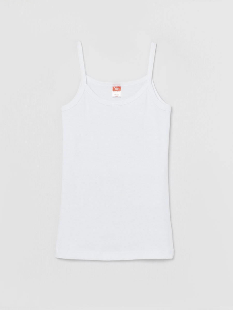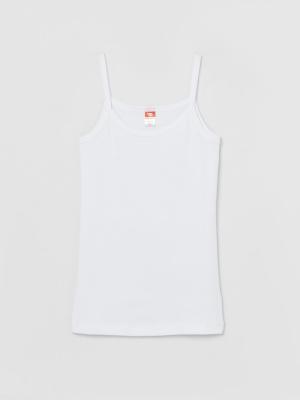Майка на бретелях из основного полотна. Верхние срезы переда и спинки, а также срезы пройм окантованы бейкой из основного полотна.Дополнительно