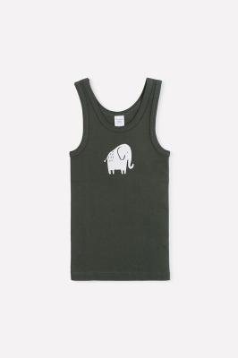 Майка для мальчика из натурального хлопка. Сшита из эластичного материала рибана пенье. Горловина и проймы обработаны бейкой. Спереди принт.Дополнительно