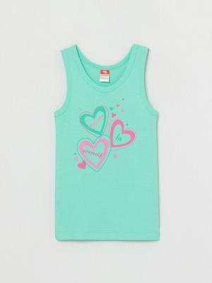 Майка с плечом из гладкокрашеного полотна. Горловина и проймы обработаны окантовкой из основного полотна. Перед оформлен шелкографией.Дополнительно