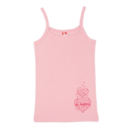 Майка из гладкого полотна на бретелях из окантовки. Верхние срезы спинки и переда обработаны окантовкой из основного полотна. Перед оформлен шелкографией.Дополнительно