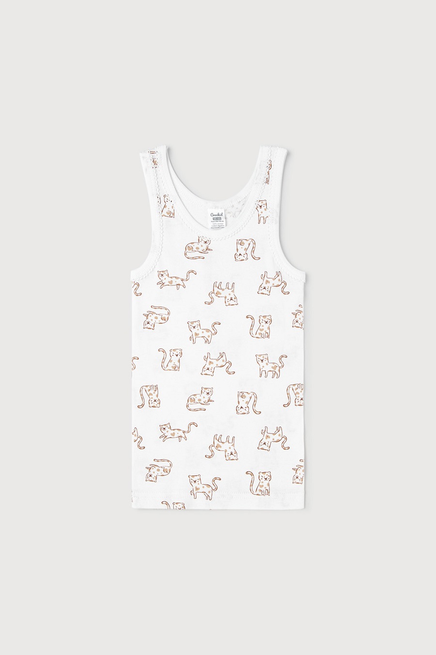 Майка на лямках из натурального хлопка. Сшита из материала рибана пенье. Украшена набивным рисунком.Дополнительно