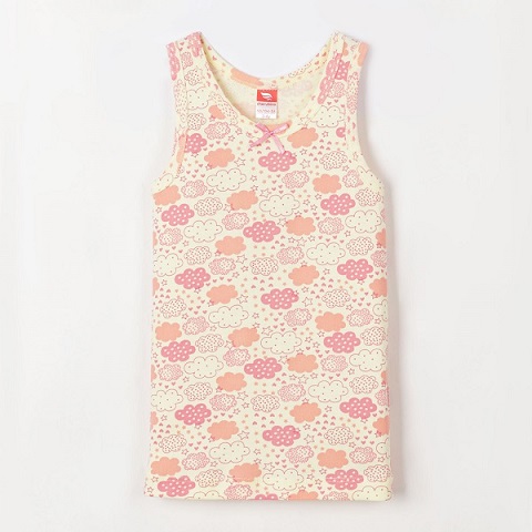 Набивная майка из рибаны. Верхние срезы спинки и переда обработаны окантовкой из основного полотна. Перед оформлен шелкографией.Дополнительно